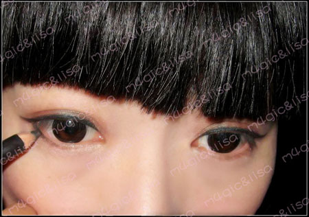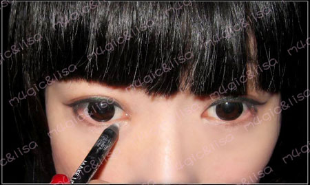 接下去是辅助作用,在下眼尾的1/3处,用眼线笔淡淡的描画,越到中间越浅越细。(有些MM不喜欢也可以不画不过上眼线,个人认为一定要画)