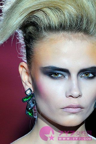 眼线 的勾勒趋于平滑细致,颜色浓黑纯正,不论是纤细的简单眼线,还是粗重的异形眼线,每一笔的描画都一丝不苟,只为突出眼神的犀利与专注。眼影的晕染也愈发精致,水墨画一般的柔美层次,矿物质的微熏光泽,都让姑娘们的眼神温柔中透着强硬。不得不感叹,也许那个前几季曾经流行过的爱画着脏眼影、刷着“苍蝇腿”般睫毛的小女孩,是真的长大了。