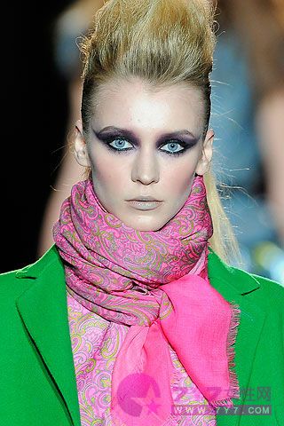 就是这么看似单调无奇的黑色,在彩妆师的笔下演绎出太多不同的情绪,或摇滚或哥特或怪诞,似乎只要愿意,黑色什么都能帮你做到。从上一季的夸张随性,到这一季的细致用心,变得是美妆态度,不变的是黑色的卓尔不群。也许在经济危机肆虐的当下,态度才是我们战胜一切的关键所在吧!