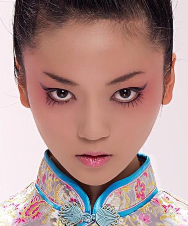 传统中国风的妆容,眼线的勾画和精致的五官都显得十分的魅力。