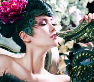 孔雀般的淑女妆气质形象,白皙的底妆干净又纯美。