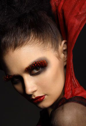 草绿色的眼影熏染上复盖一层深绿色的眼影,给一种奢华的另类感。
