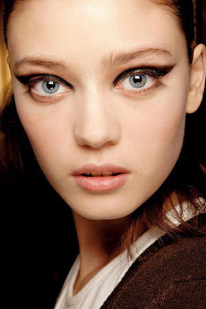 3、卷巧的上睫毛会显的妩媚,下垂的上睫毛会有迷蒙的效果,可以通过贴假睫毛来强调妆效果。