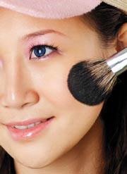 step5:淡粉色腮红以画圆方式涂在两颊最高处,提亮,增加甜美感,膏状腮红留色更持久。 来源:互联网 |