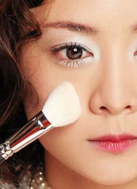 Step4:嫩粉色腮红淡淡横扫在颧骨位置,增添柔媚女人味。