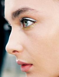 不若以往那样刻意在女性脸庞揣摩男性特质,本季的中性眼妆,是在一片柔美无瑕的粉雾状底妆及裸唇上所铺陈而出的;所以,尽管还是勾勒较粗并且还带有些棱角的眉型弧度,但却采用了较浅的浅褐色或是灰色,用自然的色彩展现性感的中性特质。