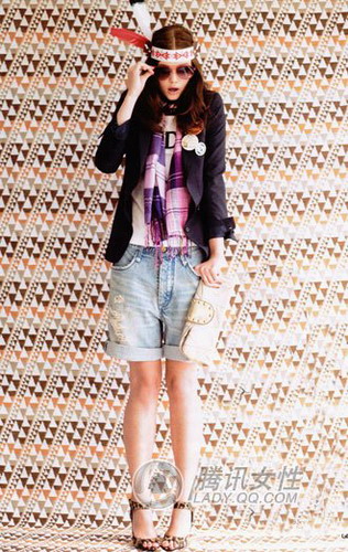 想过尝试吉普赛风情的浪漫混搭么?夏日的炎热我们没法往身上增加多余的单品,而天气转凉的秋季,成为迷恋混搭的MM最佳时机。Tee+修身小西装外套,混搭牛仔破洞短裤和豹纹凉鞋。格子呢的围巾带出更多的趣味性和层次感,选择挑眼颜色是提亮全身的关键。