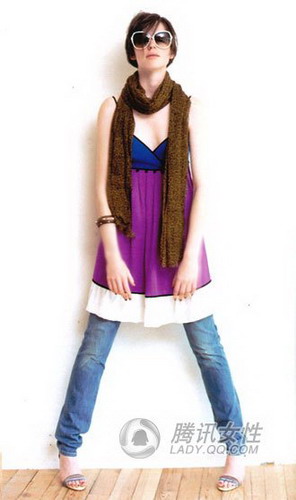 夏日的短打吊带裙搭配保暖又修身的牛仔铅笔裤,加上嬉皮风格的亮色搭配,成为文艺气质女性的秋季最爱。为了让艺术气息的装扮增加更多的浪漫气氛,不妨尝试搭配一条温情的针织围巾,咖啡色、米色和白色都是不错的选择。