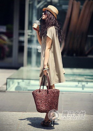 都市狩猎风格与户外度假风格完美结合的装扮,是低调而富有艺术气息女孩们的初秋完美穿搭方案之一。咖啡色系的装扮让你在质朴和低调中不乏文艺调调,样式简单的咖啡色连衣裙依靠金属质地的小饰品来提亮,凸显品味细节。