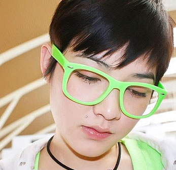 范晓萱向来是个“搞怪大王”,这副绿色的眼镜框真是合了她的个性,和绿T恤的搭配相得益彰,做足潮女本色。