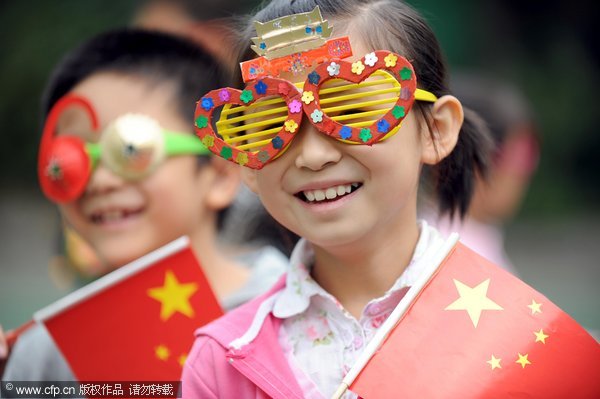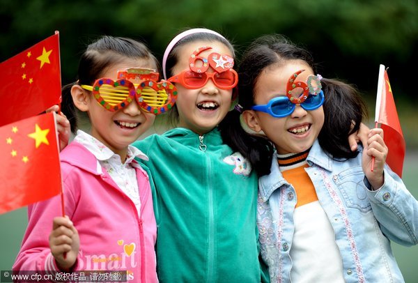 “国庆眼镜”鬼马可爱。 2009年9月25日,“我爱你!中国”主题活动在沈阳市光荣二小学举行。