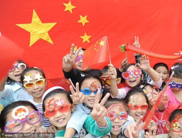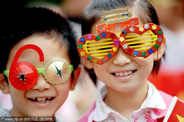 戴“国庆眼镜”鬼马可爱 小学生喜迎祖国华诞