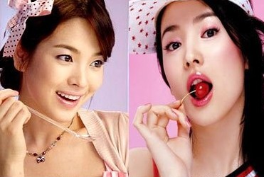 2、选用深浅两色的萤光樱桃色唇膏,营造出翘唇的立体感。