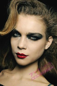 今季的红妆或者是以妆面的重点出现,也就是眼妆加以淡化,突出嘴唇,而另一种做法则是双注重,也就是既注重眼妆,一般都是以烟熏妆 出现,然后再配以红唇造型。前一种的妆容的优点就是看上去很干净,重点突出,后一种做法则带来很浓烈的戏剧效果,更适合T台上使用。