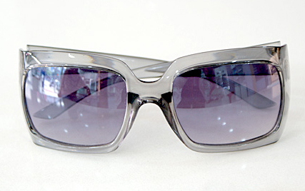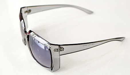 选完了上面两款,我觉得我还需要一款太阳镜,来搭配我比较帅气一点时候的衣服,嗯,要有点与众不同,甚至说有点稍微的另类。就找到了这款,很特别吧。无论从颜色还是款式上,都是区别于其他镜架的。颜色是灰蓝色,既有灰色的低调又有蓝色的冷冽,款式更是非常特别的方形镜框,有棱有角的一副别惹我的样子,明明你在眼镜后乐得不行,别人还会暗暗感叹,哇,好有震慑力吖。