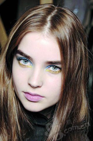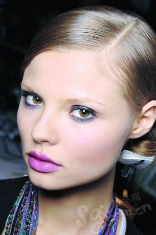 当您只需一盒双色眼影的时候,上下碰色是最简单的准绳。上眼睑晕染较往常的颜色,下眼线可以用出位的颜色来挑战视觉!