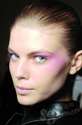 眼影和腮红一色,从眼睑不时铺到颧骨,是烟熏的新趋向。妆容很有气势,而且修容效果极佳。