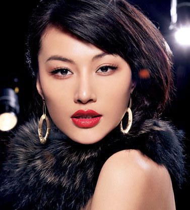深棕色眼影紧贴上眼睑涂抹,再在外眼角向上使用金棕色眼影,要晕染自然。描绘黑色的清晰眼线,浓密的睫毛膏 也不可少。使用大红色的唇线笔勾勒自然而饱满的性感红唇,选择润泽的大红色唇膏填满双唇。