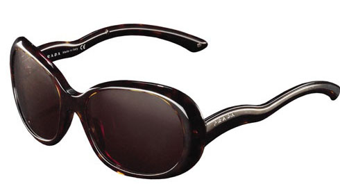 Prada 09墨镜都是大号的圆框搭配黑色镜片,酷劲十足。镜框形状稍有变化,有的是蝴蝶造型,有的是偏方的圆形,但不管细节有何变化,戴在脸上都性感神气。
