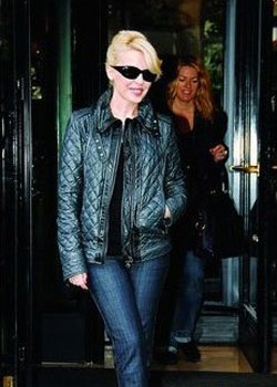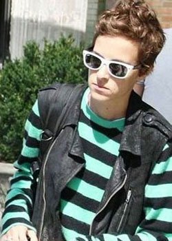 超有个性Samantha Ronson的秋季装扮少不了这件背心皮夹克,配合条纹衫,很符合她中性的气质,当然不会少了摘不下来的墨镜,白色边框很有范儿。