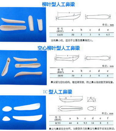 经过整形医生长期的临床观察,目前被认为最理想的材料是硅橡胶。它性质极其稳定,不会与其它物质发生任何反应;无毒性、致癌性、致畸性;质地柔软并易于雕刻塑性;它最大的优点是在手术后病人认为外形不理想时可以完整地取出,而不会留下任何缺憾。同时,它的价格也是最便宜的。因此,目前绝大多数接受隆鼻的患者都选择硅橡胶。