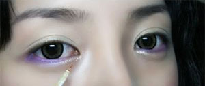 Step 3:在下眼角用珠光亮泽的薰衣草紫色眼影,沿着下眼睑的边缘按照眼尾→眼头、眼头→眼尾的顺序描画,可在眼尾1/3处适当加深。