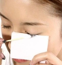 清洁眉毛先由内经外轻擦后,再用棉花的反面逆着眉毛的方向从外向里再擦一遍。