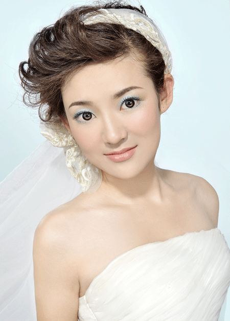 湖蓝色眼妆搭配粉色唇妆,可以体现肌肤的透明感,比较适合皮肤不够通透的女生。描画唇妆的时候,应该以薄透为主。用唇线笔描画唇形之后,将唇蜜涂满双唇即可。