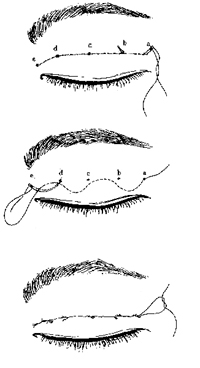 9、为了预防重睑线瘢痕增生,拆线后可在眼睑局部外用康疤膏等抑制瘢痕增生的药物,坚持1~3个月。