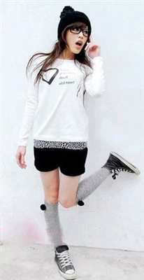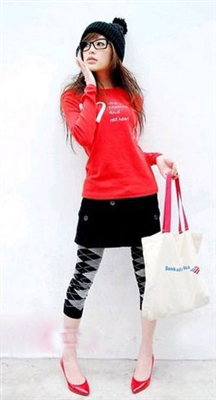 平淡无奇的造型因为眼镜与牧羊帽的加入瞬间变得生动起来,格纹袜增添了活泼的气息。