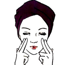 配套按摩手法:围绕眼部周围涂上一圈眼霜,用食指和中指轻轻按压。