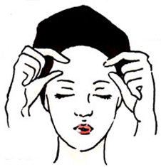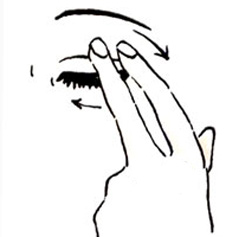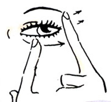 配套按摩手法:围绕眼部周围涂上一圈眼霜,用食指和中指轻轻按压。