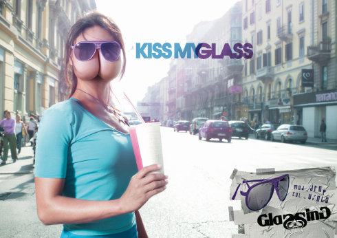 这是一组很吸引人目光的广告,尽管不大讨人喜欢。或许说的是,只要你带上了我们这个品牌的眼镜,那么你的其他部位都将不再出色,哪怕你是个美女? 把屁股蛋放在脸上的执行手段,还真是第一次见到。