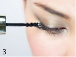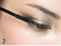 2、不需用透明睫毛液打底,直接就可以上睫毛膏,同样按中央、内眼角、外眼角的顺序上睫毛膏,在外眼角部位也是要注意尽量往外延伸地刷。