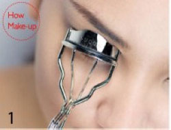 1、用睫毛夹照着中央、内眼角、外眼角的顺序夹睫毛,特别是外眼角部位的睫毛要尽量往外翘。