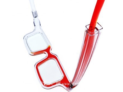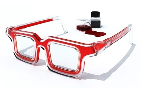 这款彩色太眼镜是由透明塑料制成,中间为一个空的管子,并可以把彩色墨水填到里面。