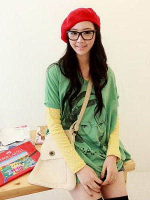 第一款,微卷而有自然的长发,加上没有遮盖额头的刘海,对脸型修饰的效果非常好。此时再配搭上大大的粗框眼镜,整个脸蛋看起来是那么的可爱精致,想让自己显得年轻点,这样最合适了,特别是秋冬季节可以带上一定红帽子,并在服装搭配上下点功夫,马上让你成为粉嫩的学生一族。
