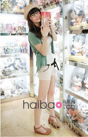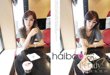 1.超可爱的~好像《IQ博士》里小云的那款眼镜呢。和MM的小Tee和吊带短裤超搭的说,卷卷的发型更让MM像小公主呢~!