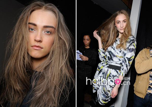 什么叫半成品发型?也许可以叫做未完成发型(Undone Hair),就是微微凌乱看起来似乎发型师在工作中途暂时离开时候的发型。在2010秋冬塔库恩 (Thakoon) 后台,造型师就是用这种发型来打造他口中”美得伤天害理(nice blowout that’s been trashed)“的模特们。