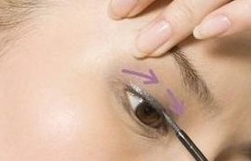 在下眼角使用暗色的话,会使目光变得更为深邃。单眼皮和内双的mm可以涂抹在外眼角三分之二的地方。