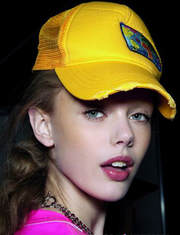 对于色彩较为缤纷的帽子,干净的裸妆是最适宜的搭配,唇部可以保持本色或者浅浅的玫瑰色;搭配比较酷一点的帽子,不妨多考虑下古铜底妆和铅灰烟熏;如果是透明度很高的糖果色帽子,可以在眼唇上挑一个部位做一些同色呼应。