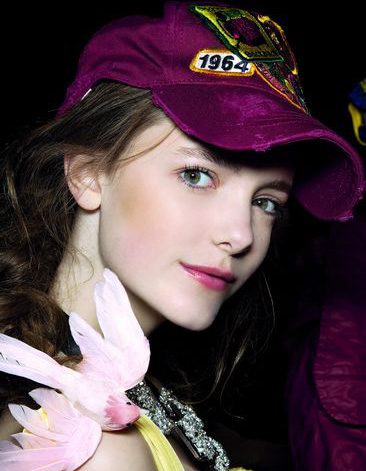 缀满勋章、图案的七彩棒球帽带你重新回到洋溢着青春气息的高校时代,妆容的色彩尽量以水润的淡色为主,底妆要显得纯净通透,加上自然的眉眼与水润饱满的双唇,就像一颗清透微熟的蜜桃一般惹人爱怜。