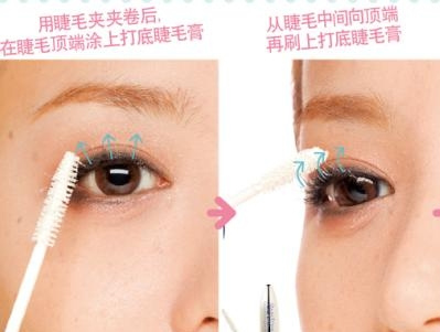 如果从根部就开始涂打底睫毛膏,是造成卷度不强的原因。要点是从顶端开始扇状扩展涂抹。