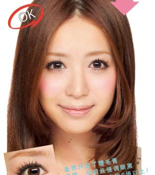 虽然只涂了睫毛膏,但眼眸分明且强调眼黑,眼周印象是原来的2倍以上