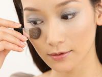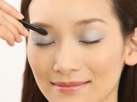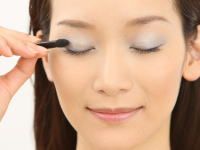 首先用眼影1涂在整个眼窝上,因为颜色不会太过华丽所以不必担心会显得轻浮。