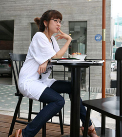 眼镜搭配3:圆形眼镜给人狡黠的感觉,丸子头+圆碌碌的圆形眼镜,很有小丸子的放大版效果。