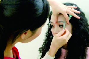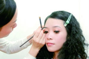 “如果修完眉以后两边的眉毛长度不统一,就需要用到眉粉和眉刷,轻轻晕开,打造最完美的效果。”