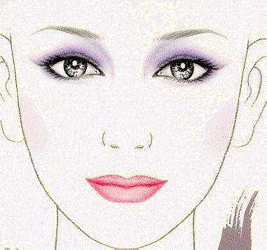 搭配色:紫色和蓝绿色清澈的蓝绿色与迷人的紫色搭配能够表现出女性的魅力与清纯。配合透明唇彩,华丽而不失简洁。 TIPS:可以用淡淡的贝壳色突出眉骨部分,从而使眼妆更加立体