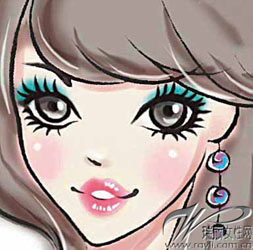 蓝色眼妆搭配粉色唇妆,可以体现肌肤的透明感,比较适合皮肤不够通透的女生。