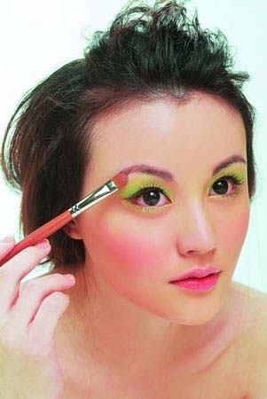 眼睛Makeup cOLor:本季绿色成为大热颜色,说明时尚带有一种对春天的向往。用金沙绿色的眼影和金绿色的眼线搭配,层次感非常鲜明,加上纤长而分明的绿色睫毛,清爽得如碧波,使人心情轻松愉悦,深咖啡色的眉毛里则透着微微的暖意。
